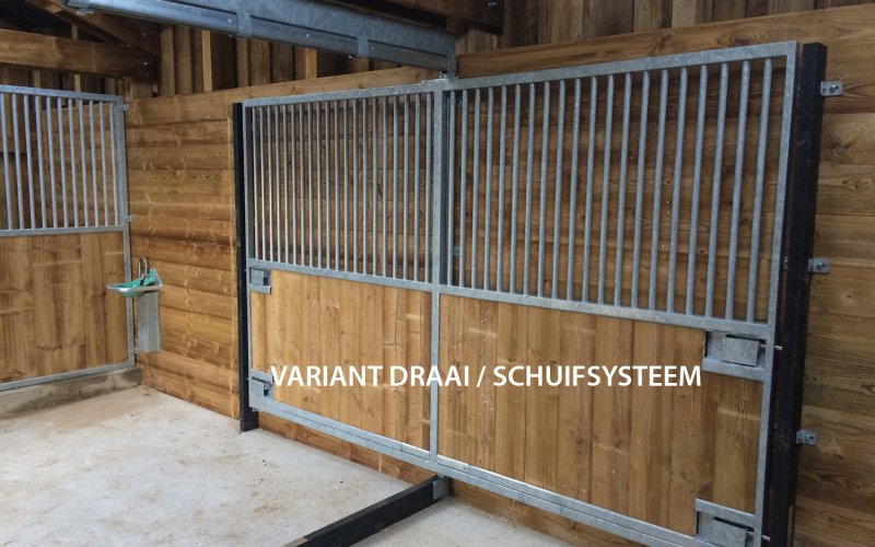 Bovendien kan je met een draaibaar tussenpaneel van twee boxen tijdelijk één grote box maken Handig wanneer je merrie moet veulenen.