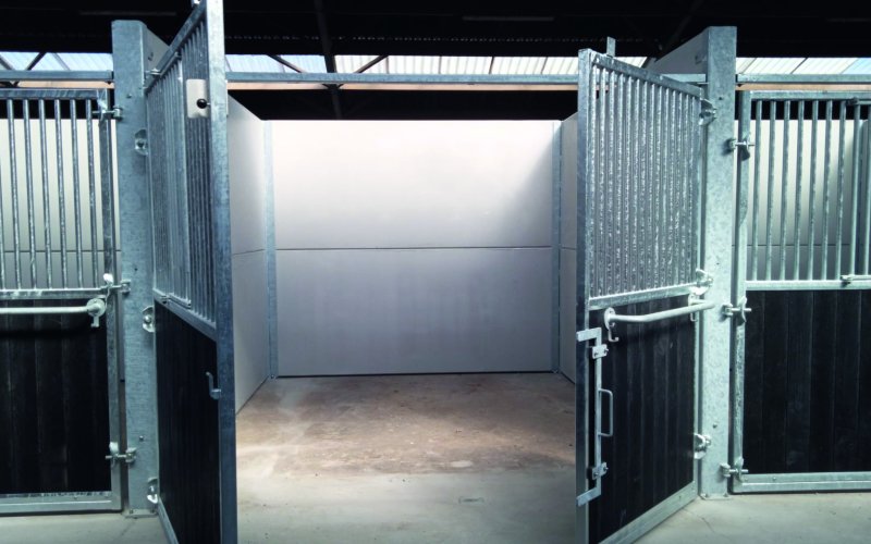 Een 2-delig opendraaiend voorpaneel is een optie wanneer de gangbreedte kleiner is dan de boxbreedte. Hierbij is de toegangsdeur een draaideur. De niet-dienstdeur wordt boven-en onderaan vergrendeld met een ingewerkte RVS-grendel. Een dubbele C-grendel sluit de dienstdeur.